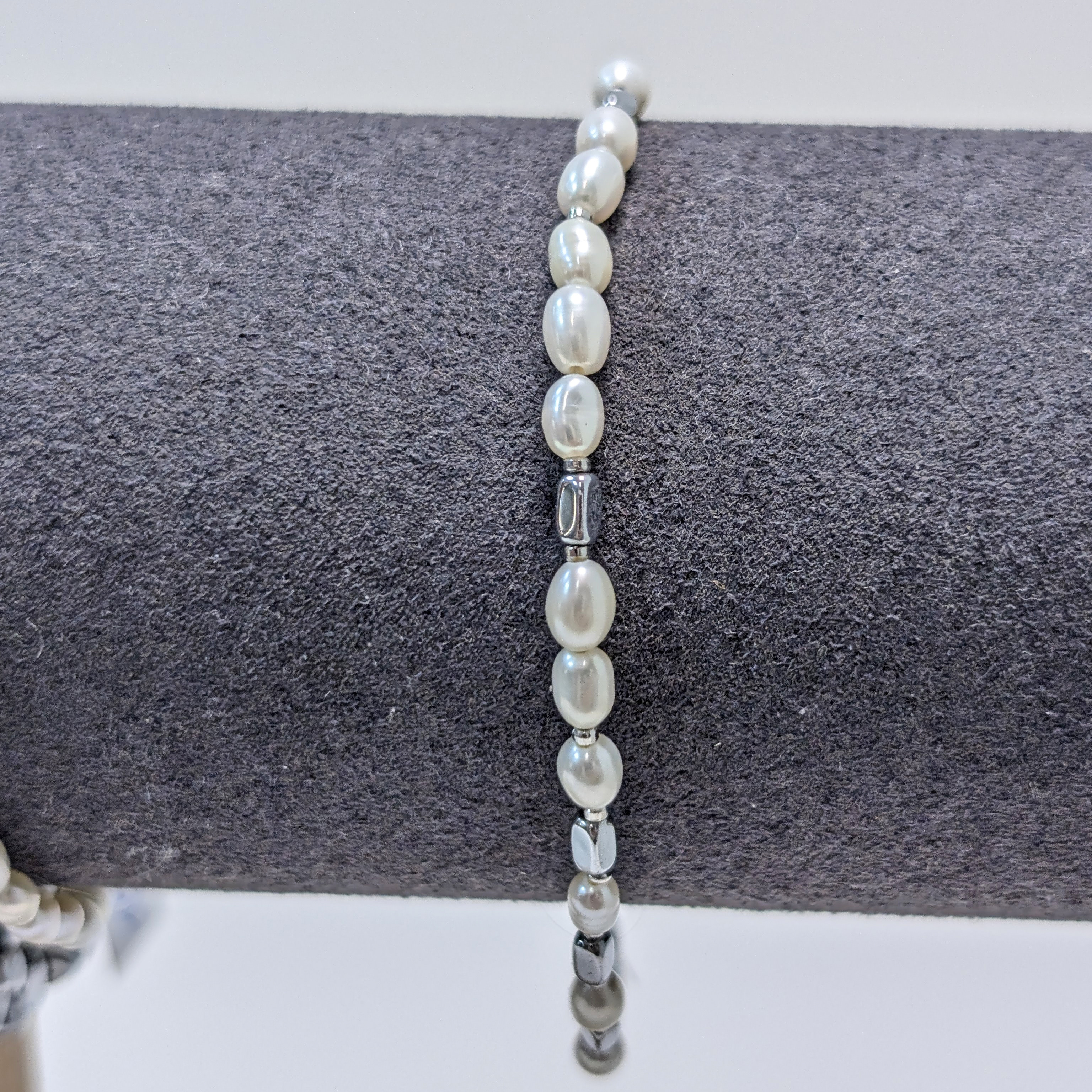 Браслет из натурального жемчуга и бусин гематита.