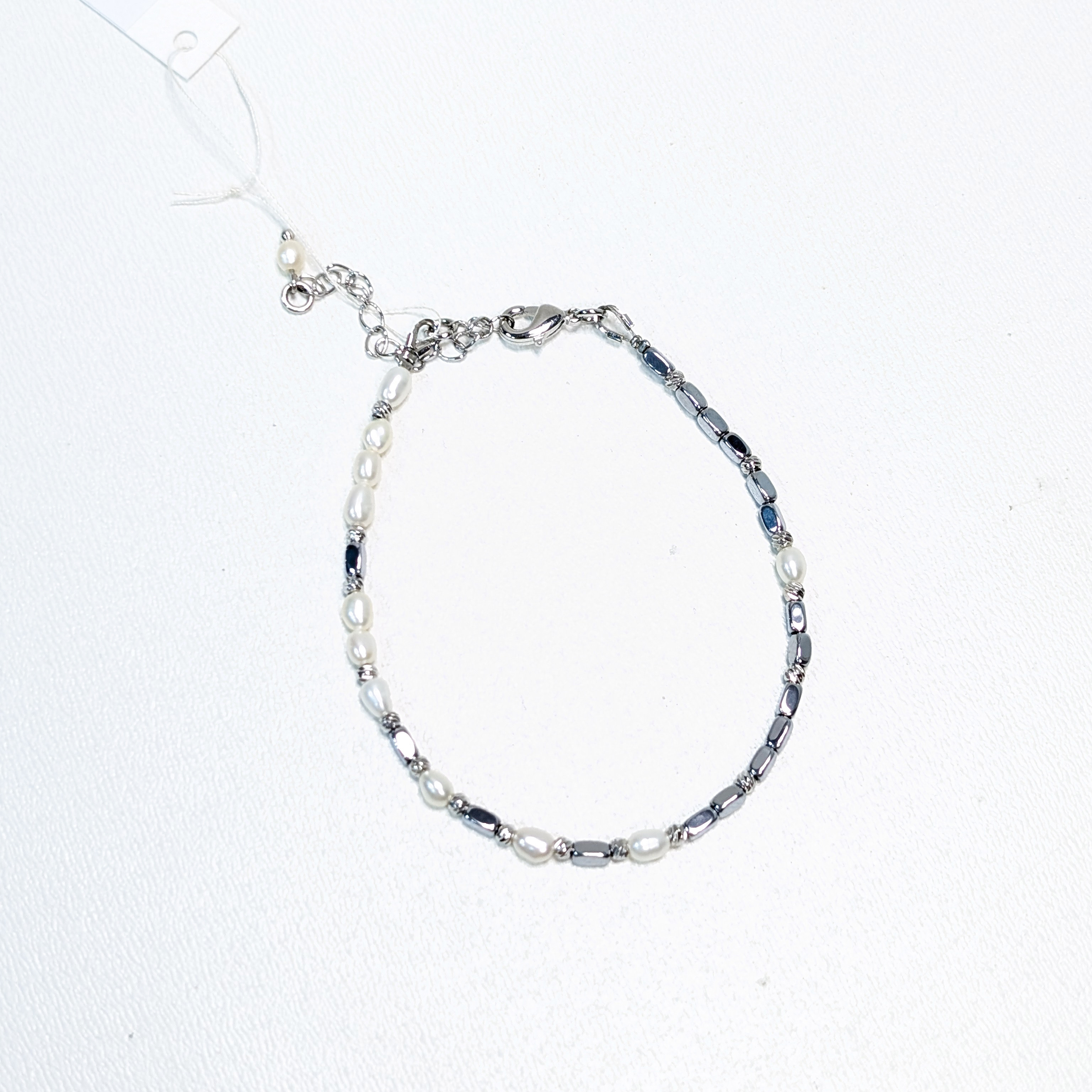 Браслет с натуральным жемчугом и гематитом.