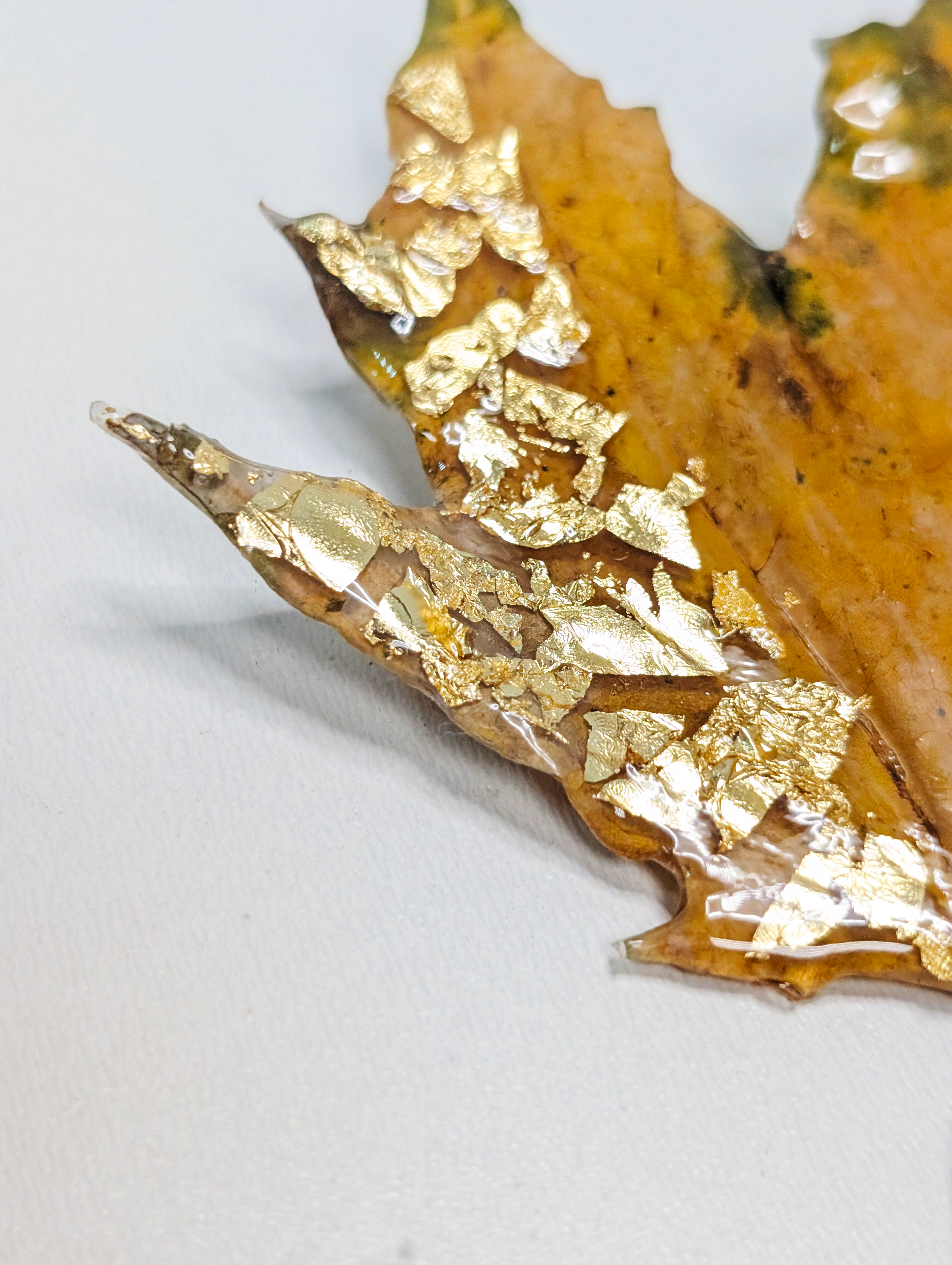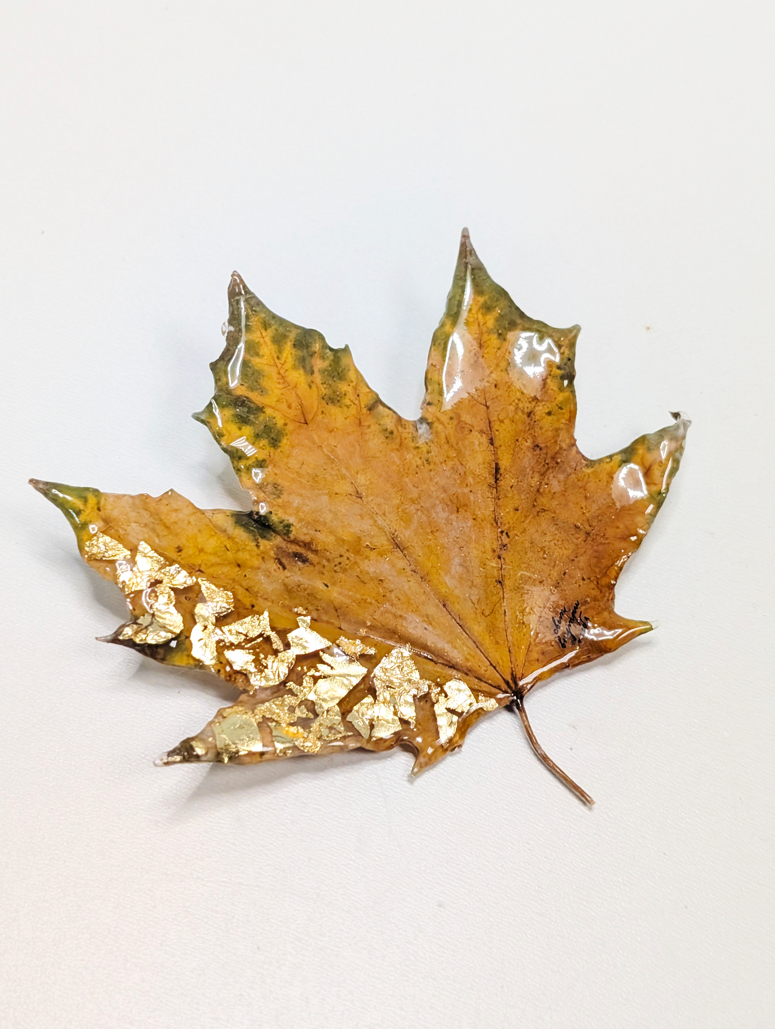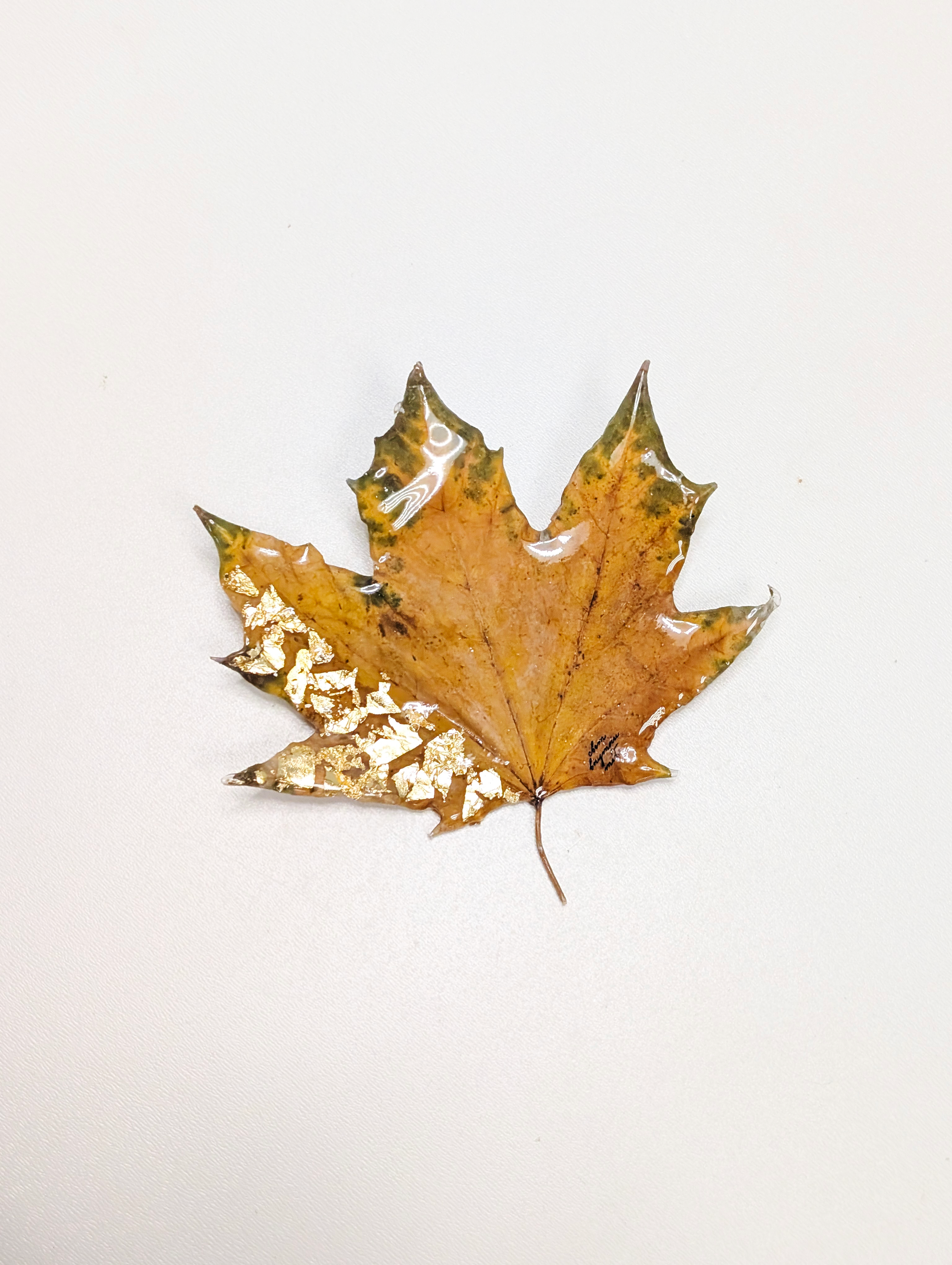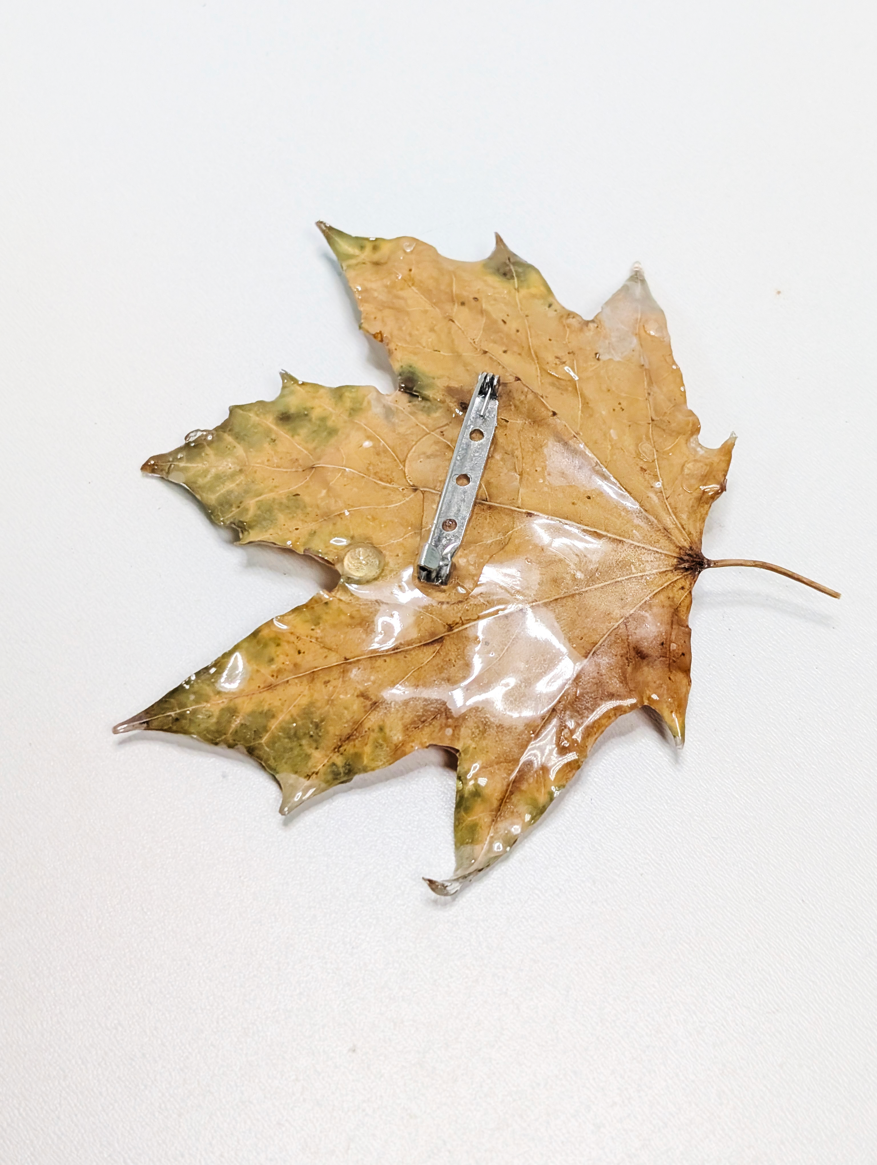 Брошь из натурального кленового листа покрытого эпоксидной смолой.