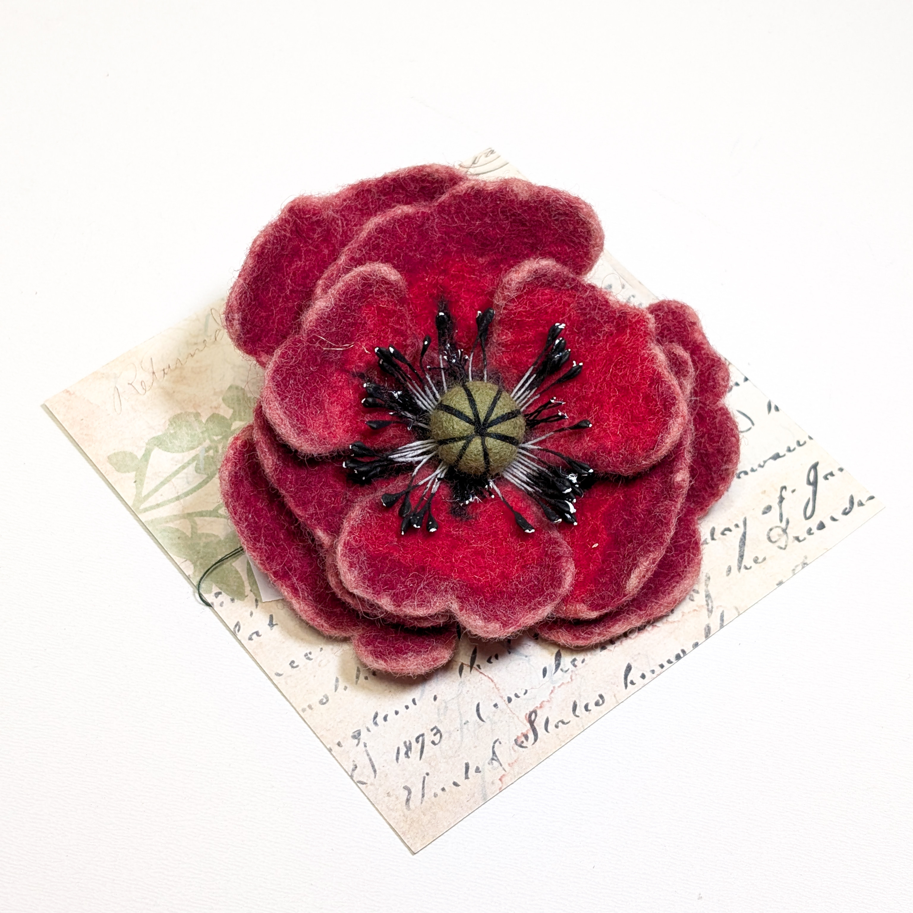 Брошь "мак" в технике валяние из шерсти. Диаметр 12см.
