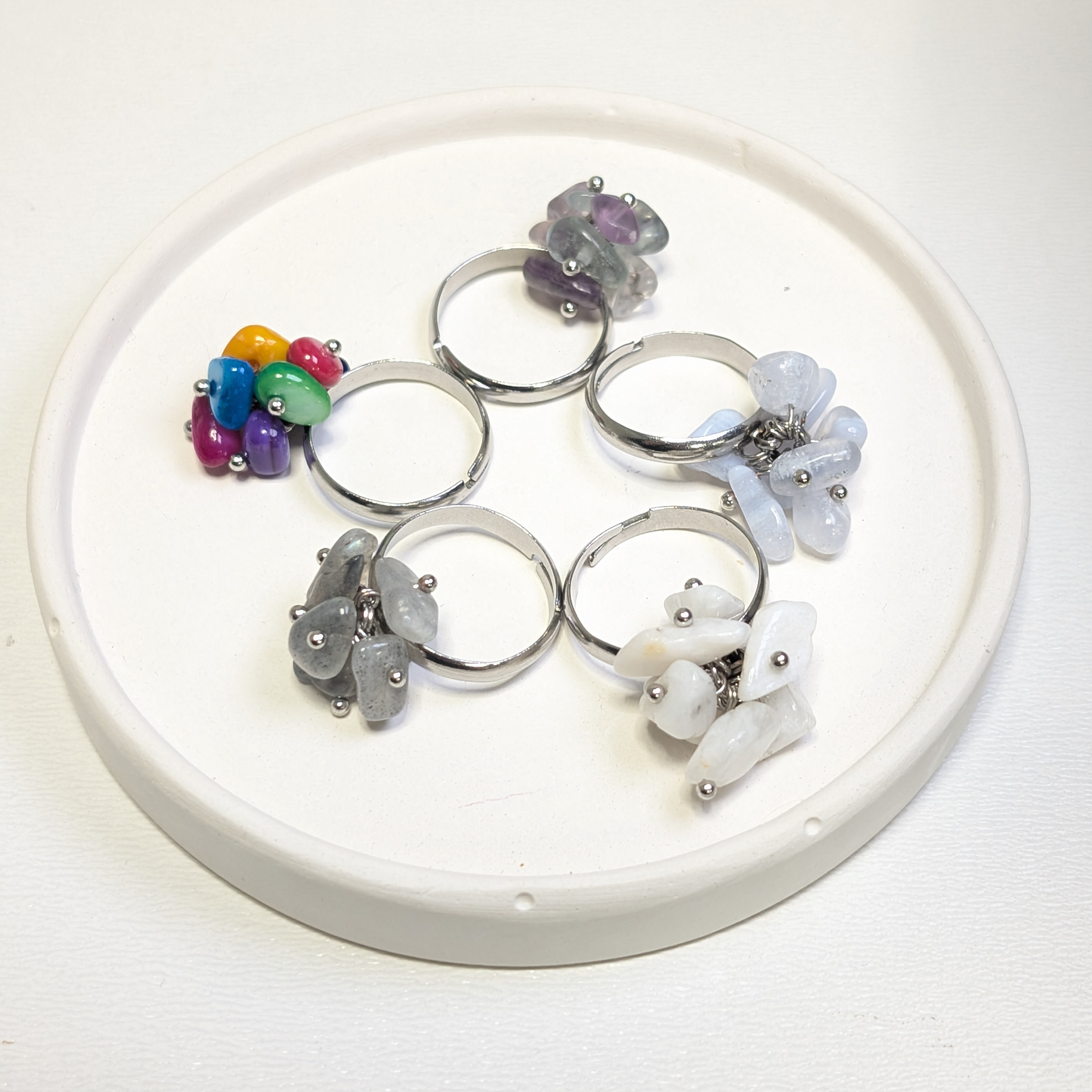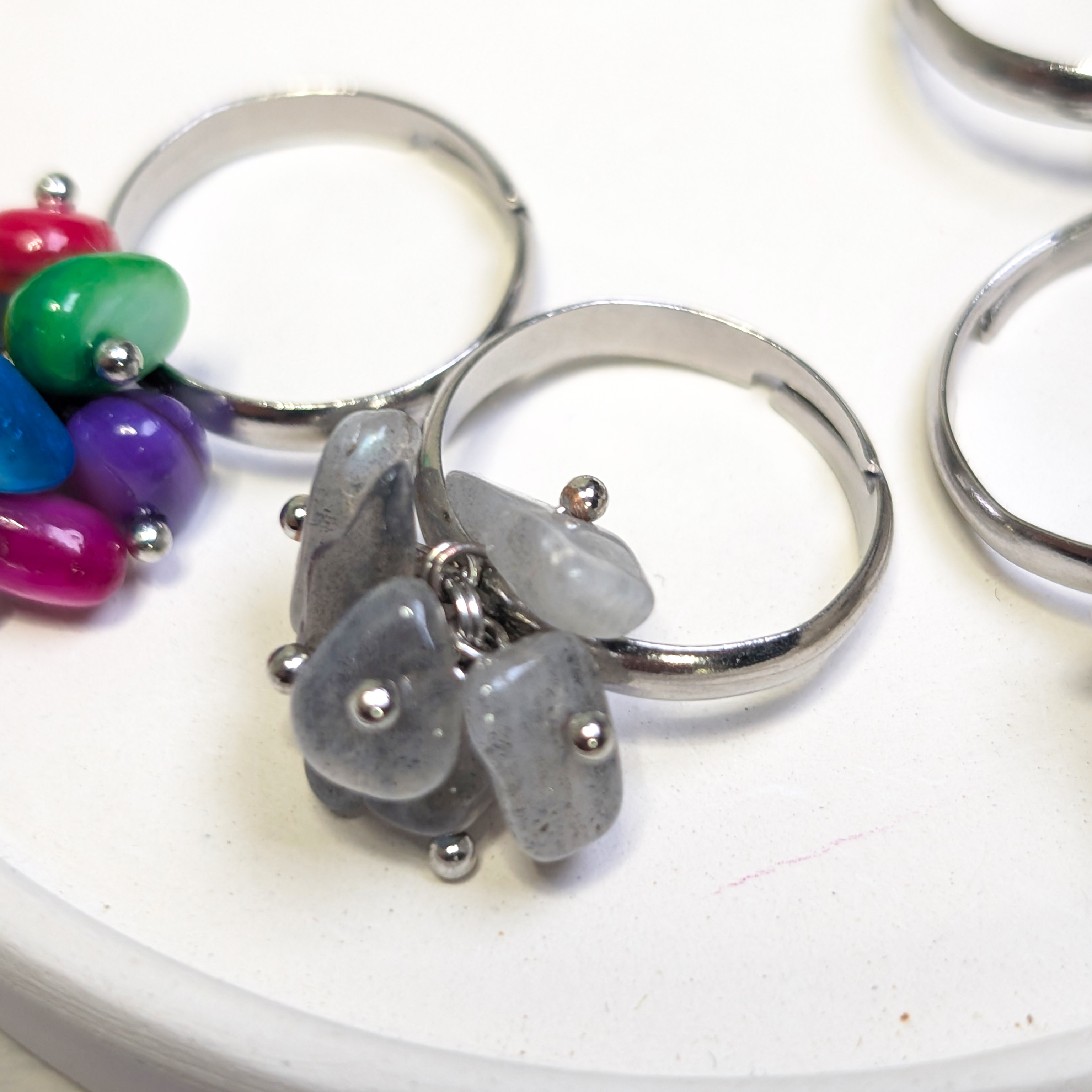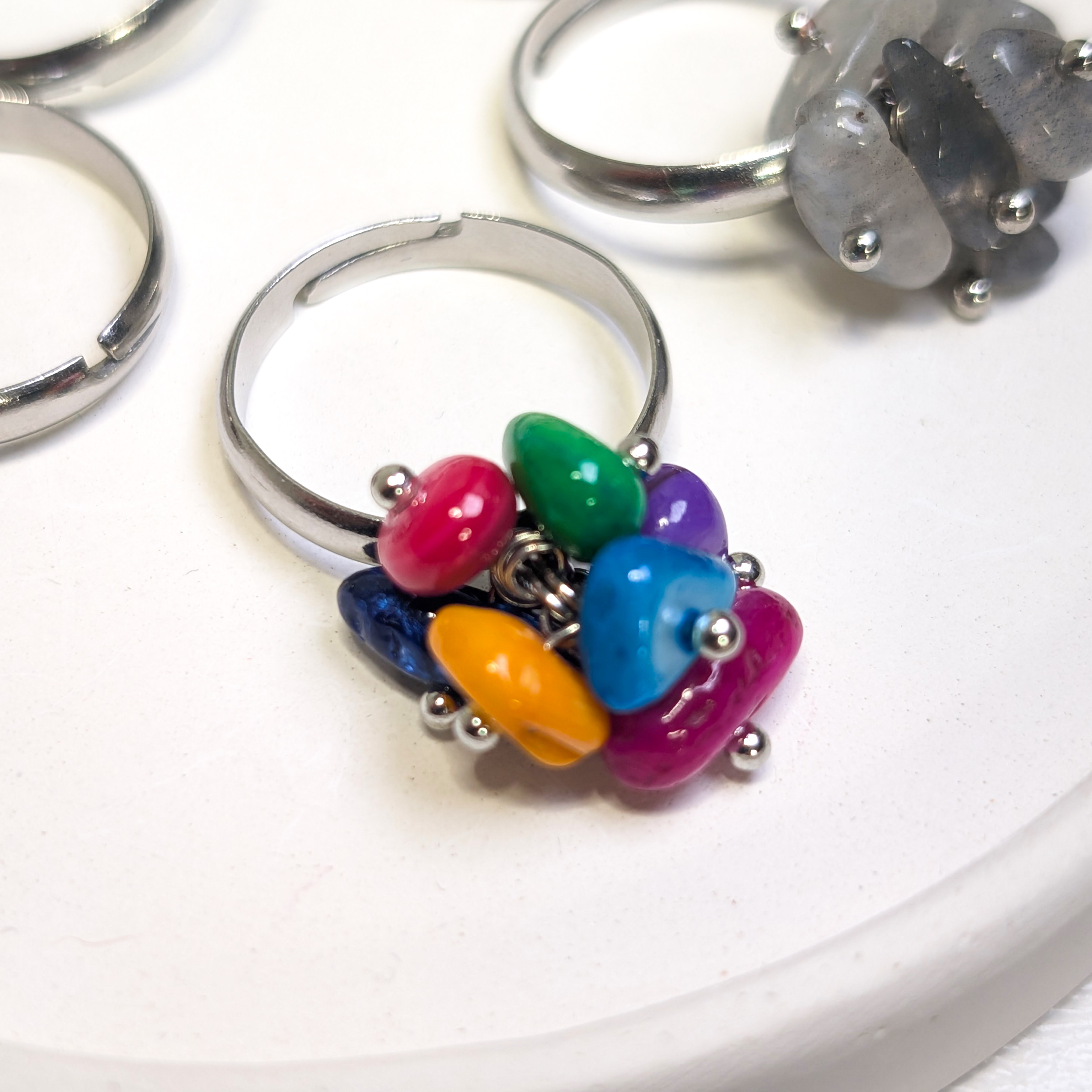 Кольца из нержавеющей стали, основа регулируется, с натуральными камнями в ассортименте из стали.