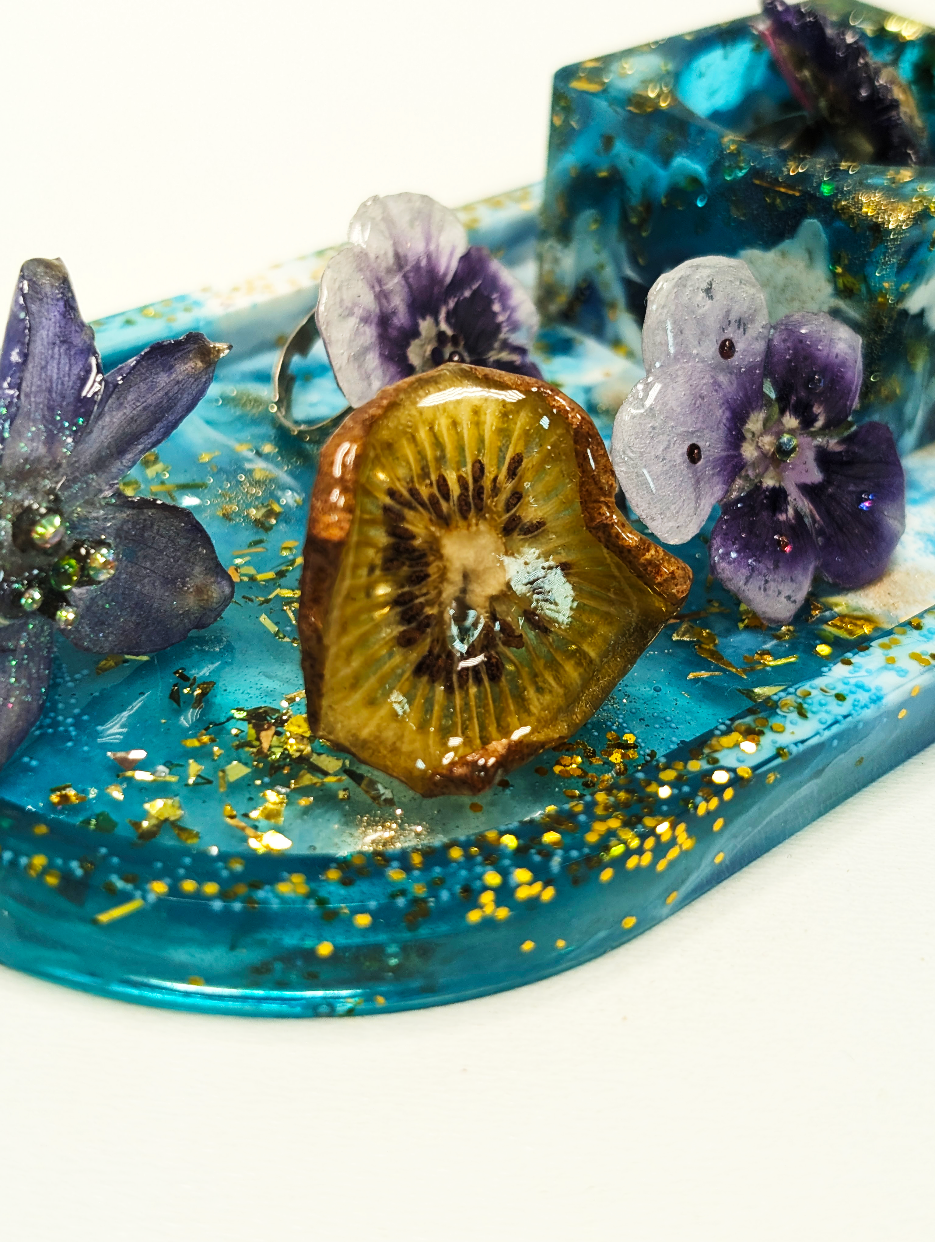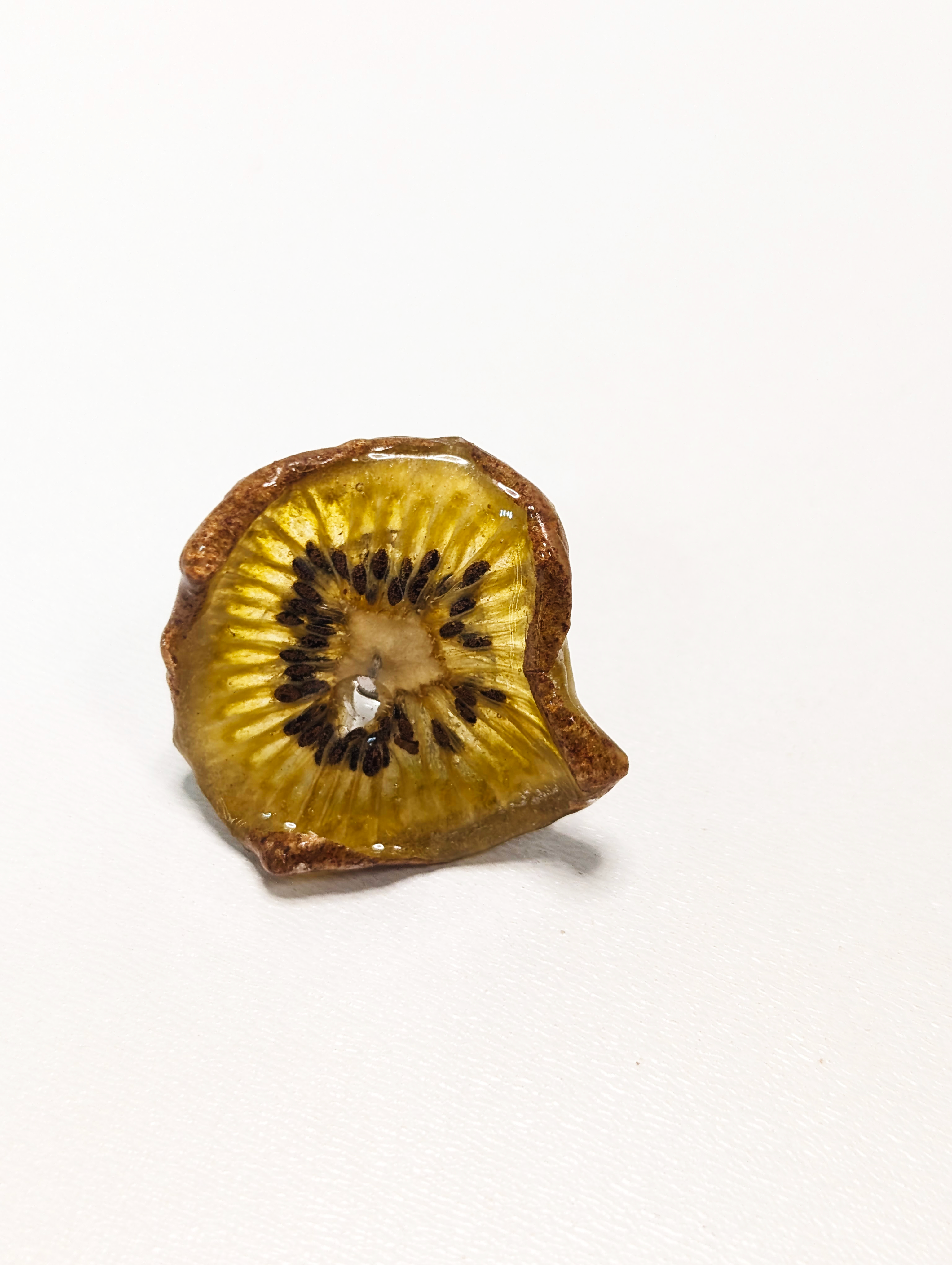 Кольцо из эпоксидной смолы и настоящего киви. Регулируемое.
