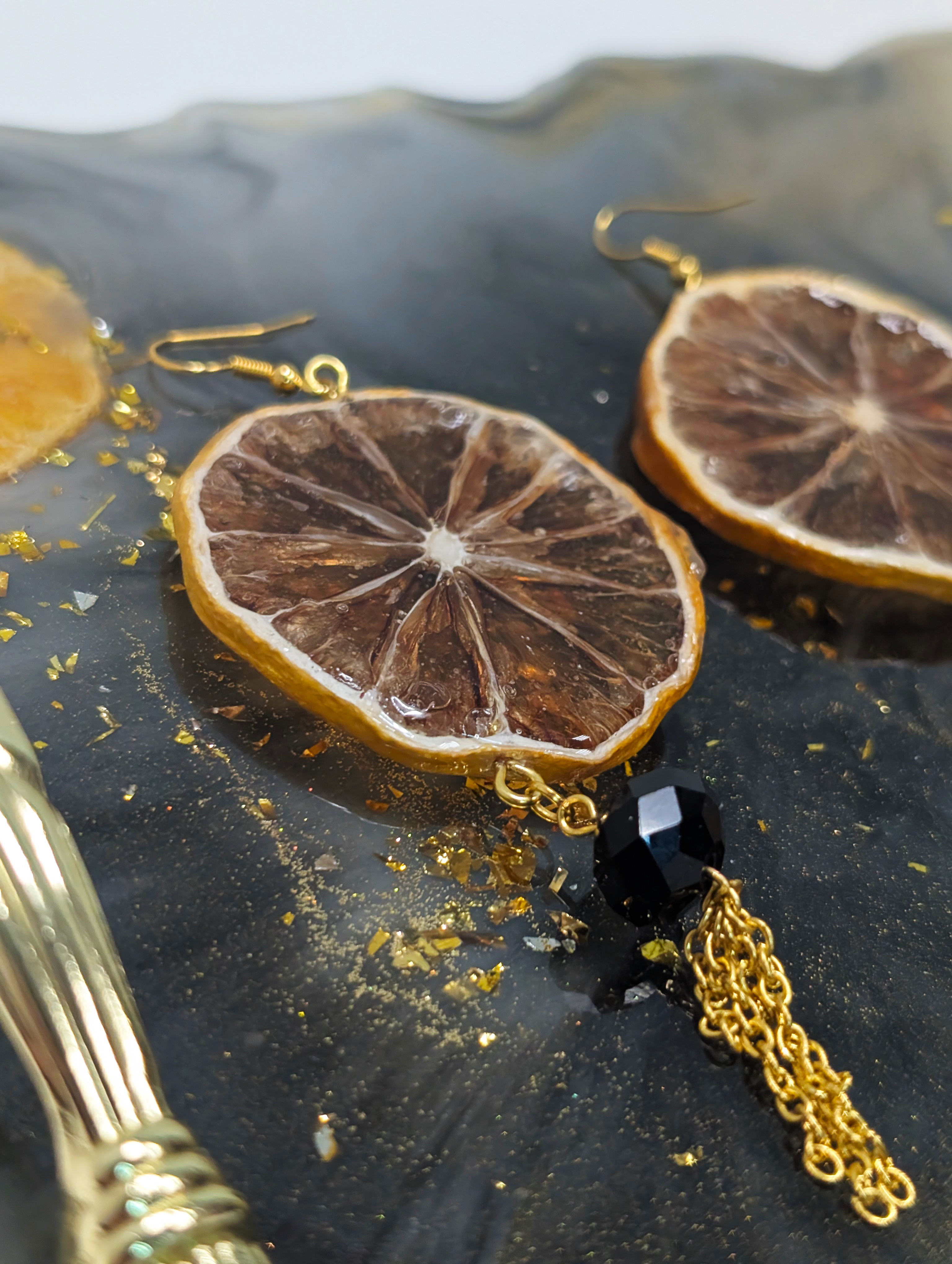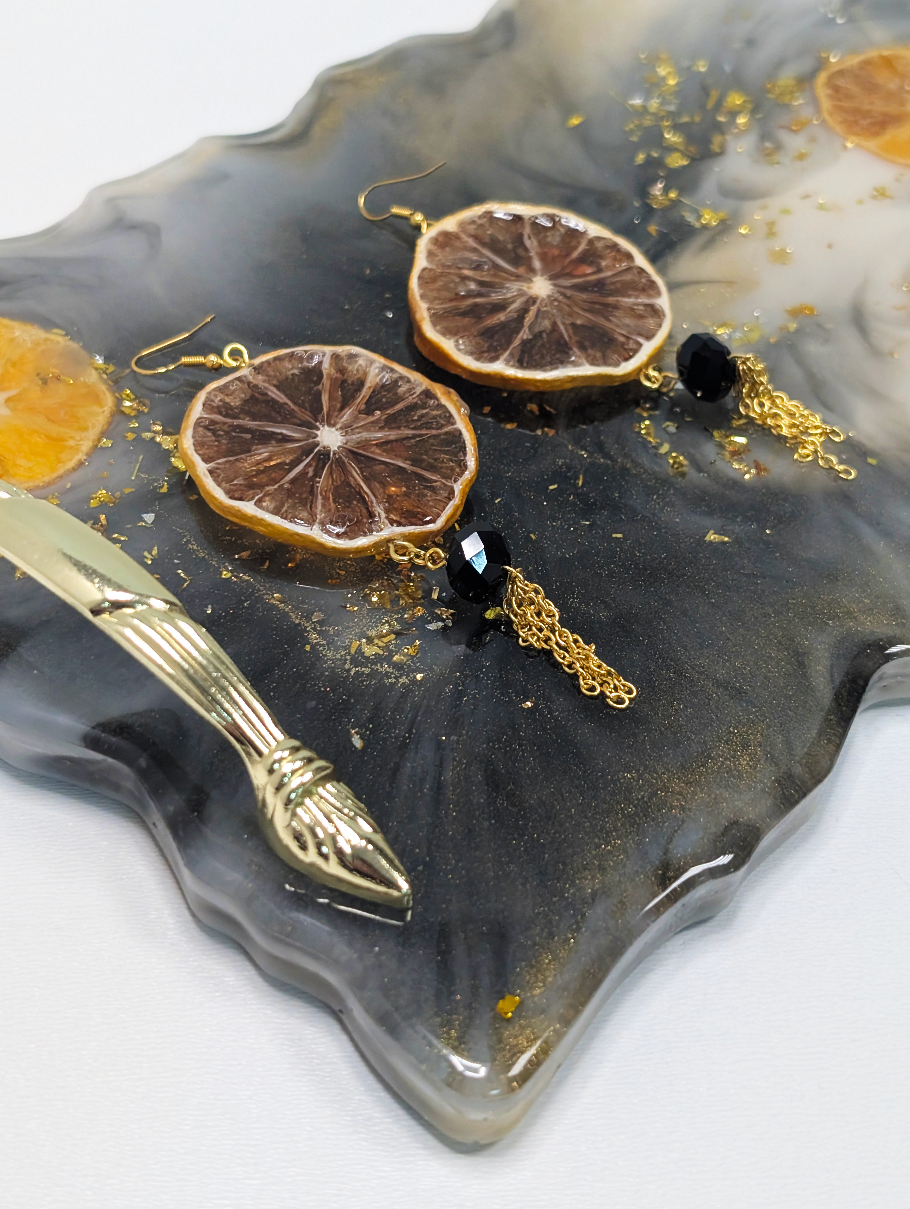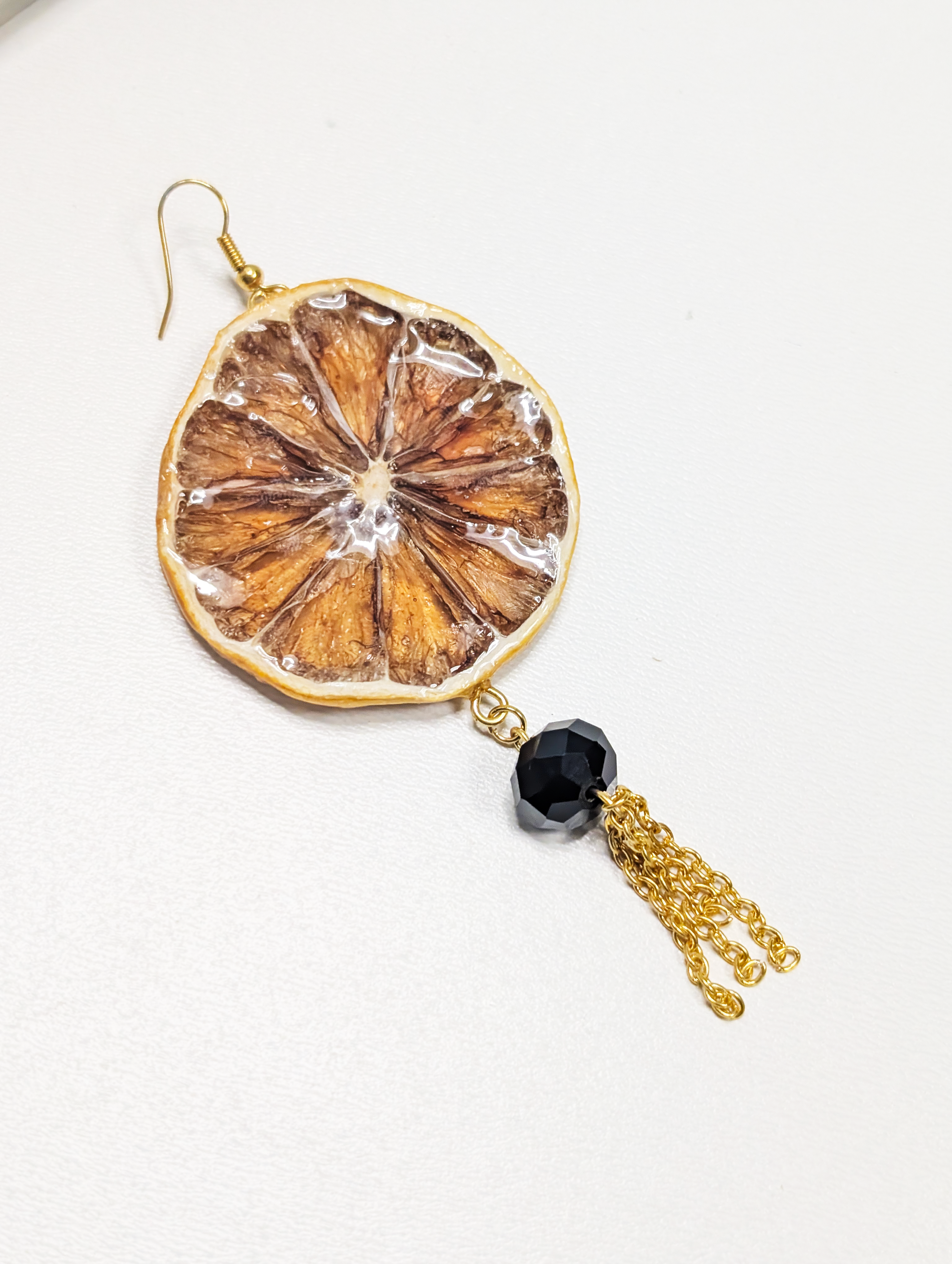 Серьги из эпоксидной смолы и настоящих долек апельсина.