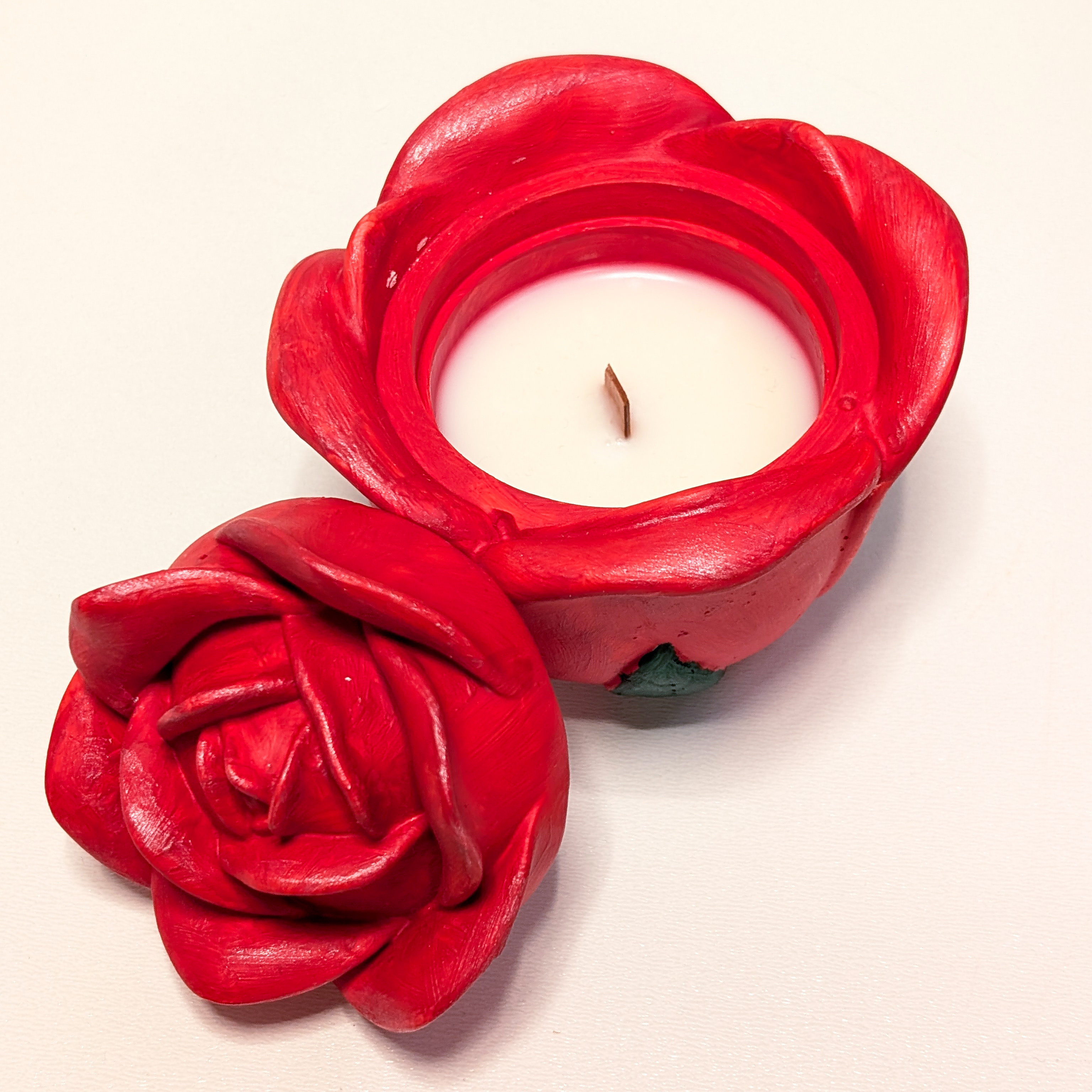 Свеча из натурального воска в гипсовом кашпо "Роза"